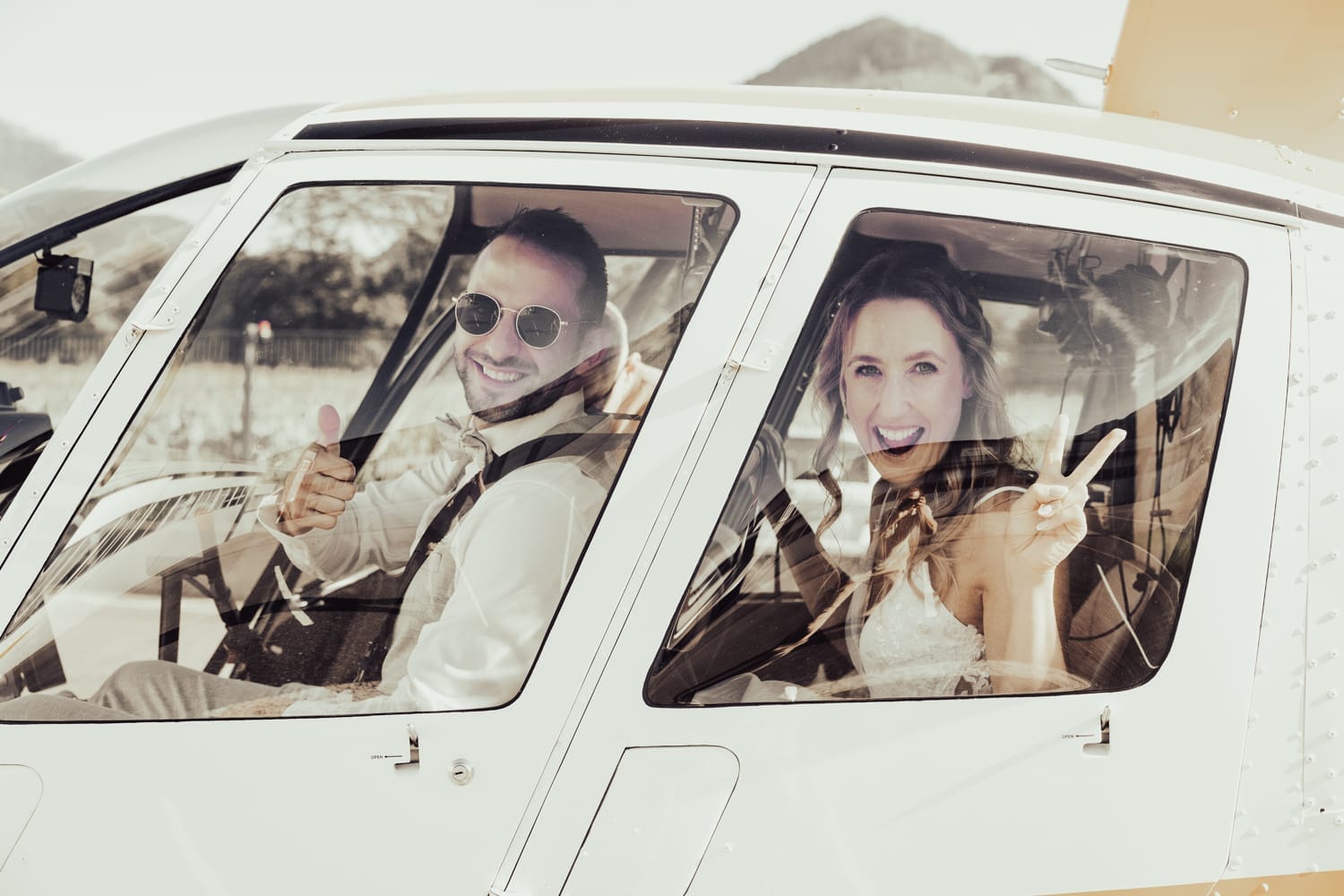 Ein besonderes Highlight des Tages war die Überraschung für Melanie & Giulio: ein exklusiver Helikopterflug mit Valair. Bevor das Brautpaar die Aussicht aus der Luft machten wir noch ein paar schöne Aufnahmen vor dem Helikopter.